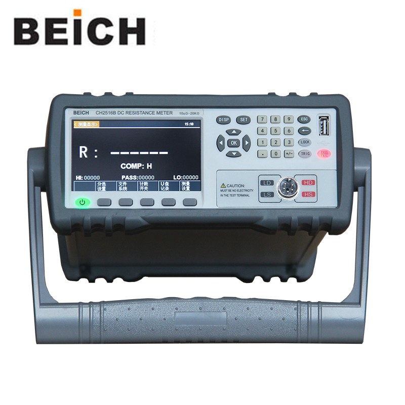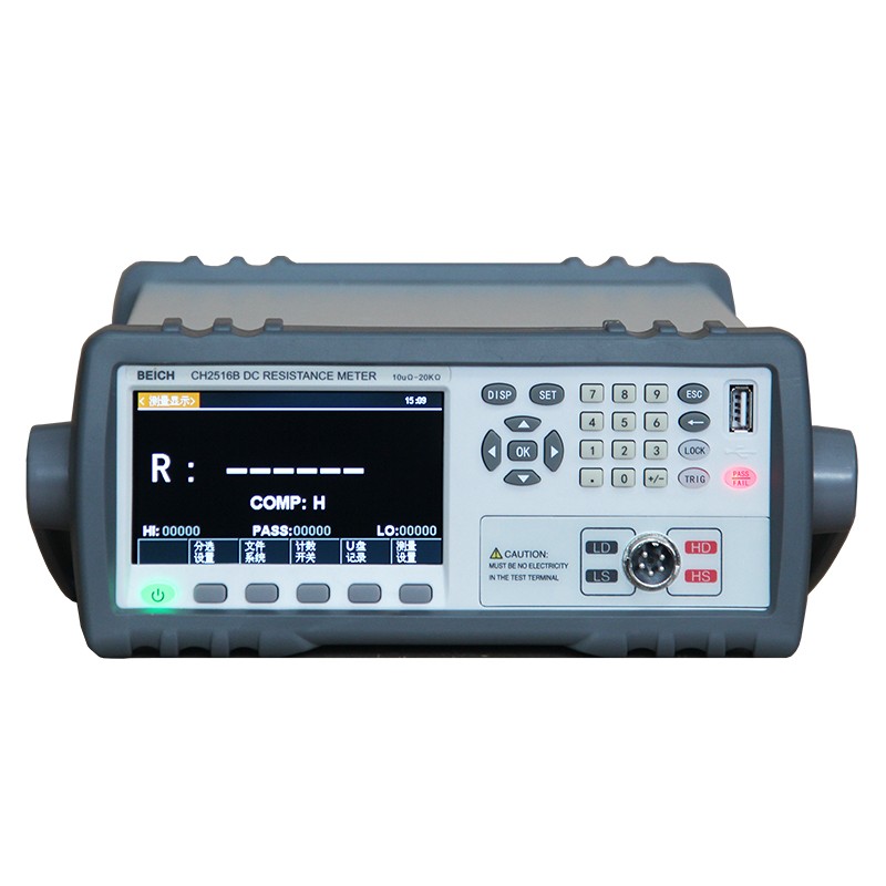 CH2516/A/B系列直流電阻測試儀具有高精度寬量程高性價(jià)比的特點(diǎn),采用當(dāng)前主流的32bits CPU和高密度SMD貼裝工藝、24位色4.3英寸IPS彩色液晶屏,界面直觀清爽、操作便捷。儀器具有較高的抗干擾性;量程范圍為: 1uΩ-2MΩ;顯示位數(shù)為四位半;測試速度可達(dá)20次/秒;測試精度可達(dá) 0.05%;溫度補(bǔ)償能免除環(huán)境溫度對測試工作的影響;本儀器配備有專業(yè)分選功能與數(shù)據(jù)輸出功能等,具有多樣分選訊響設(shè)置,還可匹配Handler接口,應(yīng)用于自動(dòng)分選系統(tǒng)完成全自動(dòng)流水線測試,使測試效率倍增。并配備RS232接口,用于遠(yuǎn)程控制和數(shù)據(jù)采集與分析。本儀器小巧、緊湊但功能齊全。通過四端子測試法,可高速、高精度的測量各種高、中、低值電阻器;各種開關(guān)接觸電阻;接插件接觸電阻;繼電器線包和觸點(diǎn)電阻;變壓器、電感器、電機(jī)、偏轉(zhuǎn)線圈繞線電阻;導(dǎo)線電阻;車、船、飛機(jī)的金屬鉚接電阻;保險(xiǎn)絲、電阻器、導(dǎo)電橡膠的直流電阻、印制板線條和孔化電阻等直流低電阻。由于儀器配備有溫度補(bǔ)償功能,因此適合于測量電阻值因溫度而發(fā)生變化的被測對象。儀器廣泛用于研究開發(fā)、生產(chǎn)線、進(jìn)料檢測等各種場所。