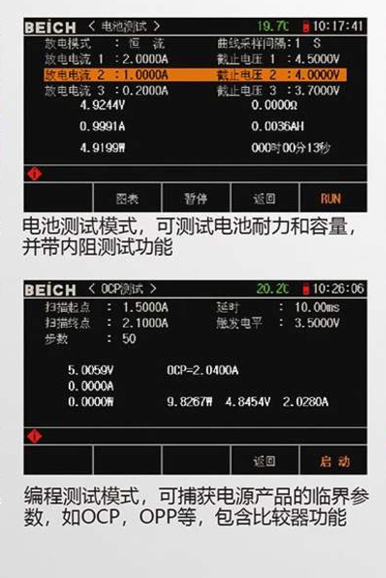 ■ 電池測試模式,可測試電池耐力和容量,并帶內(nèi)阻測試與曲線描繪功能